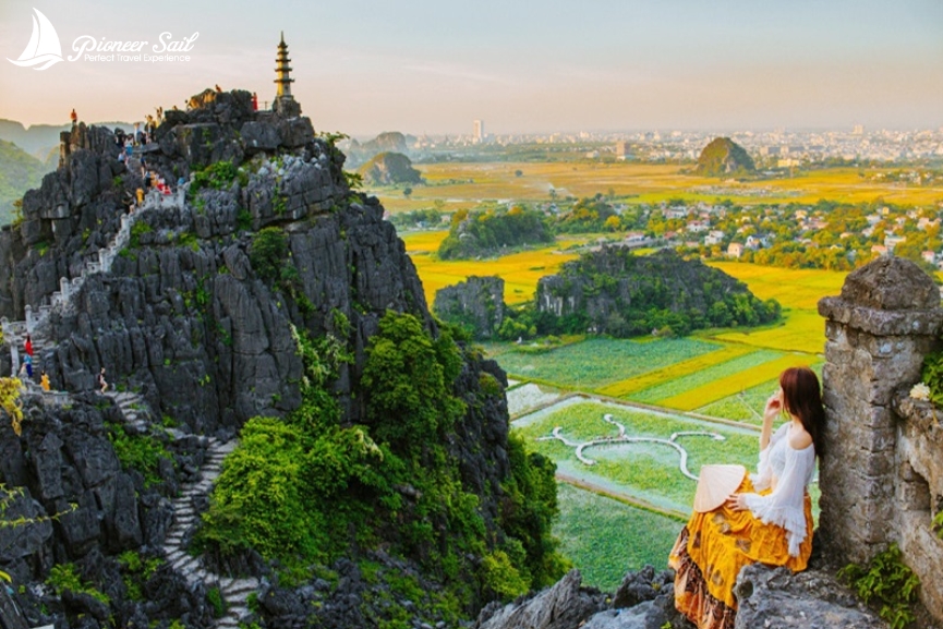 15h30: Get back to Limousine Bus then leave for Mua Cave (Dancing Cave). Walk up almost 500 steps, you can reach the top of Lying Dragon Mountain & have an amazing panoramic view of Tam Coc from here