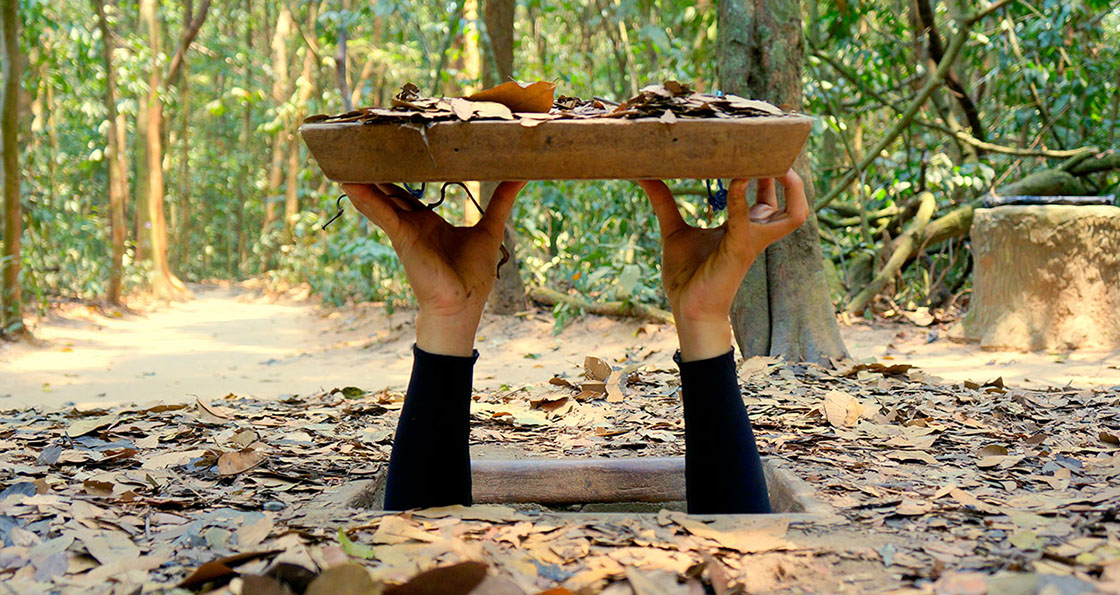 Along the way to Cu Chi from Ho Chi Minh city, we will pass by the scenic local countryside, where you might even spot ducks and buffalo cooling off in the river. You will find it hard to imagine the destruction and damage that once dominated the area, caused by bombing and mines when Cu Chi was “a free target zone.”