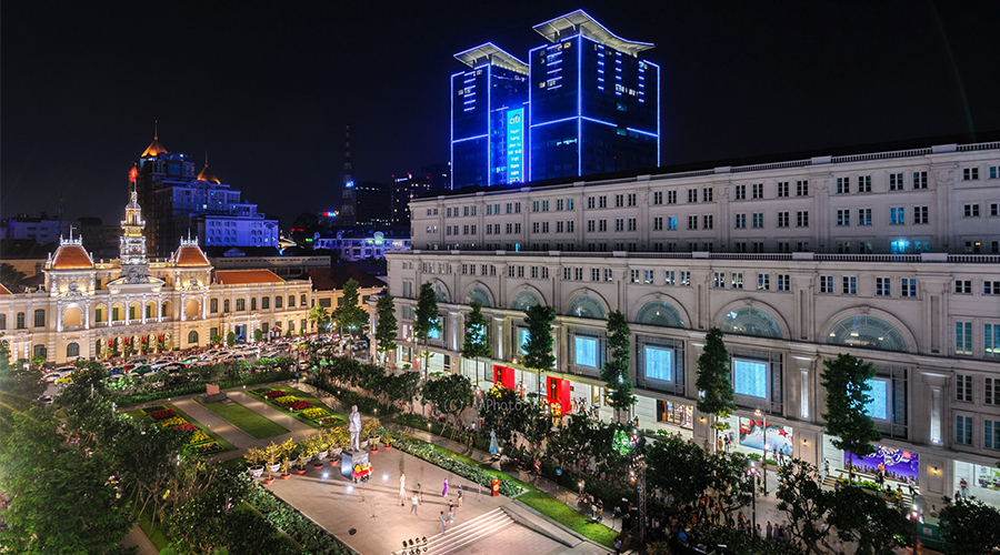 Continuing by riverside street, the overview on Thu Thiem 2 bridge give you beautiful landscape of the Saigon River with two icons of the city: Bitexco and Landmark 81 tower.